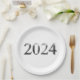Happy New Year 2024 Elegant Faux Silver Year Numbers Stylish New Year's Eve Party Plate