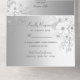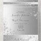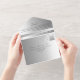 A luxurious and elegant all-in-one wedding invitation, blending modern chic with faux silver accents. Adorned with bohemian vintage florals, a monogram at the top flap, and graceful modern calligraphy, this design beautifully showcases the couple’s photo. Personalise it with your own photo, wedding details, and RSVP for a truly unique and sophisticated invitation.