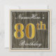 Elegant, Faux Wood, Faux Gold 80th Birthday + Name Invitation