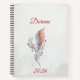 This personalized notebook features a delicate hand-drawn feather intertwined with botanical details, set against a soft watercolor wash in warm peach and golden tones. The flowing script name at the top makes it a thoughtful and refined keepsake — perfect for journaling, planning, reflections, or creative writing.