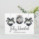 Send warm holiday wishes with this elegant flat Christmas card, featuring a minimalist front design with three black and white watercolor ornaments, accented by evergreen greenery and sweet bow details. "Feliz Navidad" is written in graceful script typography, with your family name displayed underneath in a classic serif font for a custom touch. You can also change the greeting to suit your style.