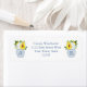 Classic return address label design featuring a watercolor ginger jar filled with blue and white florals, topped with bold sunflowers.