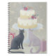 A soft, minimal illustration of two refined cats sitting under a beautifully decorated tiered cake, surrounded by delicate gifts. Gentle colors and elegant details create a warm, celebratory aesthetic perfect for home décor and stationery.