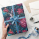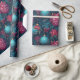 Unveil a touch of elegance with each gift wrapped in this exquisite paper, featuring a rich tapestry of deep teal and vibrant pink hues. The wrapping paper showcases a repeating pattern of ornate teal Christmas baubles intermingled with lush pink peonies, all set against a dark, moody background that adds depth and sophistication. Each bauble is delicately adorned with golden accents and intricate details that catch the light, promising to make your presents stand out under the tree. This high-quality wrapping paper is perfect for those who appreciate the finer details during the festive season.