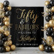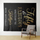 Celebrate a half-century of style with this sophisticated "Fifty & Fabulous" birthday party backdrop. Featuring a striking high-contrast design, this wall tapestry pairs a deep black background with a shimmering faux gold foil script that exudes elegance and luxury. The template wording is fully customizable, allowing you to easily update the name for the special party! Whether you’re hosting a formal dinner at a hotel or a chic cocktail soirée, this backdrop will set the perfect tone for a memorable 50th milestone celebration.