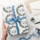 This elegant Christmas wrapping paper has a watercolor greenery wreath and "first Christmas as Mr and Mrs" pattern. It is the perfect way to celebrate your first Christmas as a married couple.