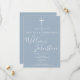 Elegant First Holy Communion signature save the date invitation featuring an elegant script signature name on a dusty blue background. Personalise with your special event information. Designed by Thisisnotme©