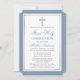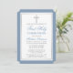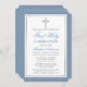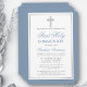 Modern Elegant Dusty Blue and Silver First Holy Communion Invitation with Cross. Ticket Style.