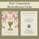 You'll love to personalise our beautiful First Holy Communion Remembrance Holy Card. It features the Eucharist with Chalice with pink roses. All text and fonts can be modified.