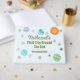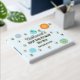 This medium-sized First Trip Around The Sun guest book and album in a blue variation is a cute addition to the sun, stars, and planets theme for a baby boy's 1st birthday. It coordinates with the other galaxy party decor, check out the full collection. This design features a hand-painted sun, stars, and watercolor planets on the front and reverse side.