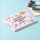 This medium-sized First Trip Around The Sun rose gold foil guest book and album in a pink variation is a cute addition to the sun, stars, and planets theme for a baby girl's 1st birthday. It coordinates with the other galaxy party decor, check out the full collection. This design features a hand-painted sun, stars, and watercolor planets on the front and reverse side.