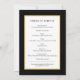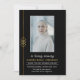 This Memorial Program design features elegant golden ornament on the black background and place for photo. The reverse side of this program is black coloured with chic white flowers, ang greenery frame with funeral order service .