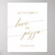 Elegant Flat Gold Calligraphy Love and Pizza Sign