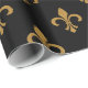 elegant Fleur De Lis pattern black gold party wrap Wrapping Paper