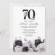 Set the tone for a memorable milestone celebration with our 70th birthday party invitations. The classic white backdrop beautifully contrasts the rustic black & lilac watercolor florals, making the invite an absolute visual treat. Paired with a chic seventieth birthday celebration text template that you can personalise, these invitations are a perfect blend of elegance and charm. Get ready for the ultimate 70th birthday bash!