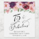 Elegant wine labels for her 75th birthday party featuring "75 & Fabulous" in a stylish calligraphy script and watercolor bouquets of burgundy red, blush pink and purple florals. Easily personalise with her name and the party date.