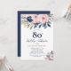 Celebrate a milestone birthday with grace and charm using our exquisite 80th Birthday Invitation. This elegant invitation features a stunning design adorned with pink and navy blue peonies, creating a sophisticated and timeless floral arrangement. Perfect for an intimate gathering or a grand celebration, this invitation encapsulates both beauty and sentiment, making it a keepsake to treasure. This customisable invitation allows you to tailor all the important details, ensuring your loved one’s special day is celebrated in a remarkable way. A digital download is also available for evites.