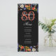 Elegant Floral 80th Birthday Party Menu Black Invitation