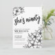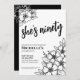 Floral Ninetieth Black White 90th Birthday Party Invitation. A fun but elegant 50th birthday party invitation with black and white flowers for the young at heart. Please note that the gold will not have any actual shine to it, it's simply a colour. A playful flower pattern frames a script typography "she's ninety" mixed with a more classic serif font. Celebrate ninety years of life with this beautiful botanical design. The fun part is you can change out ALL of the colours!! You can not only change the background colours and font, but you can change the lines for the flowers as well.