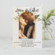 Elegant Floral Arch Script Romantic Photo Wedding Invitation. Perfect for a floral wedding . The design has space to add your favourite photo with floral background and arch with wedding details written in an elegant formal font. Back of the card has space to add a second photo. The names of the bride and groom is in a pretty cute script font. Send out these beautiful romantic peach yellow floral wedding invitations to friends and family . simple elegant chic floral wedding invites .