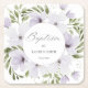 Elegant Floral Baptism Christening Script Square Paper Coaster