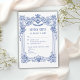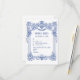 Elegant Floral Baroque Blue Column Wedding RSVP Card