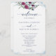 Elegant Wedding program with delicate blue watercolor stains and graceful floral detail on top in a beautiful blend of berry, burgundy, dusty blue and navy hues. Modern hand written calligraphy elements. Ability to make text changes and adjustments by selecting customise further. Front with wedding ceremony details, back with wedding party names and thank you message for your guests. Elegant modern feel. Part of our "Berry, Blue and Burgundy Floral" collection with variety of coordinating products available.