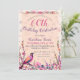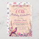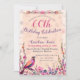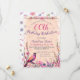 Beautiful birthday party invitation with a decorative bird and cottage style flowers in tones of pink purple and peach. The combination of bold and pastel watercolor gives an eye catching result. All text can be fully personalised.