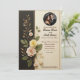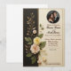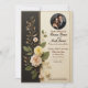 • This sophisticated wedding invitation features a luxurious black and cream leather-textured background adorned with intricate gold-accented floral designs. Perfect for timeless and elegant weddings, it beautifully captures a classic yet modern style. The design includes a circular photo area to personalise with a favourite picture of the couple.