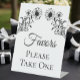 Using this stunning wedding favour table sign, you welcome your guests with elegance and charm. This sign is perfect for minimalist weddings or rustic country ceremonies, featuring a delicate arrangement of sunflowers and wildflowers in classic black and white. The fancy script adds a touch of sophistication, while the easy-to-read font ensures your message—"Please Take One"—is clear and inviting. Ideal for summer, spring, and fall garden parties, this botanical-inspired sign blends beautifully with any wedding decor. Elevate your favour table with this timeless, elegant addition, ensuring every guest feels appreciated.
