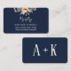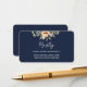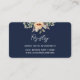 Dark blue wedding registry information card with watercolor apricot flowers and garden foliage. A simple yet elegant contemporary botanical design inspired by boho vintage style.