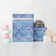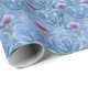 This is a botanical style image featuring an intricate and elegant floral pattern in soothing shades of blue. The design showcases delicate flowers with soft lavender petals, surrounded by swirling green leaves and ornate details that create a harmonious and calming effect. Perfect for adding a touch of nature-inspired elegance to home decor or fashion accessories, this pattern evokes feelings of tranquillity and sophistication.