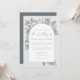 This design features a watercolor dusty blue floral rose elegant, with light blue flower, rose silver leaves, elegant floral classic blue silver, a classic formal romantic calligraphy, minimalist simple greenery monogram back, watercolor floral foliage leaves, eucalyptus leaves silver green, simple elegant calligraphy script, a classy modern minimal botanical garden, stylish trendy typography ampersand, traditional wedding classic light blue, beautiful pretty elegance simplistic