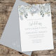 This design features a watercolor dusty blue floral elegant, with light blue flower rose leaves, elegant floral classic blue silver, a classic formal romantic calligraphy, minimalist simple greenery monogram back, watercolor floral foliage leaves, eucalyptus leaves silver green, simple elegant calligraphy script, a classy modern minimal botanical garden, stylish trendy typography ampersand, traditional wedding classic light blue, beautiful pretty elegance simplistic