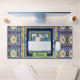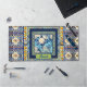 Elegant floral blue tile chinoiserie monogram note desk mat