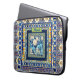 Elegant floral blue tile chinoiserie monogram note laptop sleeve