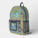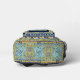 Elegant floral blue tile chinoiserie monogram printed backpack