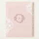 Elegant floral pattern and hourglass design planner. Design features our hand-drawn flowers and floral hourglass design with the year features in the hourglass. Personalise with your name along the bottom. The reverse side features a circle floral monogram crest. Artwork and design by Moodthology Papery.