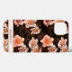 This iPhone case features an ornate, beautiful floral pattern of white, gold and pink flowers over a black background. Personalise it with your name, set in a modern, simple, black font. An elegant, stylish phone case.