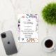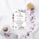 Introducing our minimalist and trendy wedding invitation, featuring a pretty flowers in light purple and green leaves and more, with an elegant background , creating a clean and stylish look for your special day.