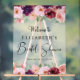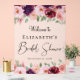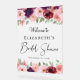An elegant bridal shower frosted acrylic welcome sign featuring watercolor bouquets of burgundy and blush pink florals and "Bridal Shower" in a calligraphy script. Personalise with the bride-to-be's name and the shower date.