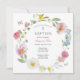 A beautiful First Baptism invitation featuring a delicate watercolor floral wreath with pastel flowers and butterflies. The soft colors and elegant script create a romantic and timeless design, perfect for celebrating.