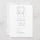 Elegant Floral Crest Dusty Blue Script Wedding Invitation