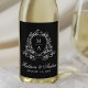 Elegant Floral Crest Monogram Black Wedding Wine Label