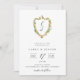 Elegant colourful watercolor foliage and floral monogram crest, wedding invitation. Watercolor floral crest features shades of peachy cantaloupe and greens. Backing colour, shown in peachy cantaloupe, can be customised. Modern and chic typography design.