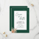 Dark green 'save the date' for weddings, with watercolor apricot flowers and garden foliage. A simple yet elegant contemporary botanical design inspired by boho vintage style, with monogram on the back.