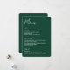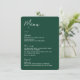 Dark green menu card for formal events and weddings, with watercolor apricot flowers and garden foliage. A simple yet elegant contemporary botanical design inspired by boho vintage style, with monogram on the back.