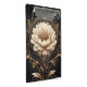 Artistic composition of a symmetrical floral design with intricate patterns highlighting a central flower in soft tones.