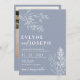 Elegant Floral Dusty Blue Herbal Boho Wedding Invitation