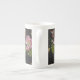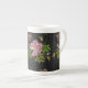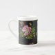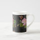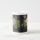 Elegant Floral Embroidery Pattern Black Background Bone China Mug